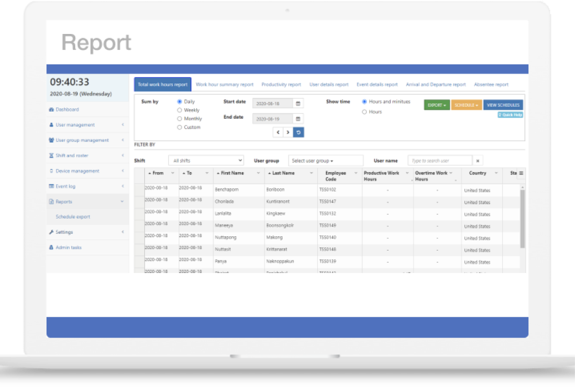 ใช้งานง่าย ครบครัน ทั้งการจัดการกะเข้างานและรายงาน